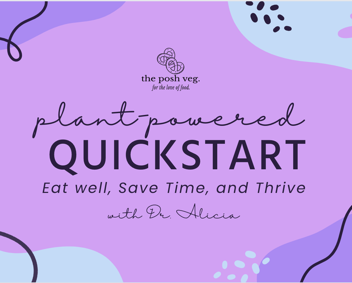 This Plant Powered Quickstart Workshop gives you the EXACT steps in Dr. Alicia's Seamlessly Meatless Framework & Whole Balance Method so you can use them to ditch stress, reduce bloating, balance your hormones, lose weight, and/or gain confidence with your food choices!